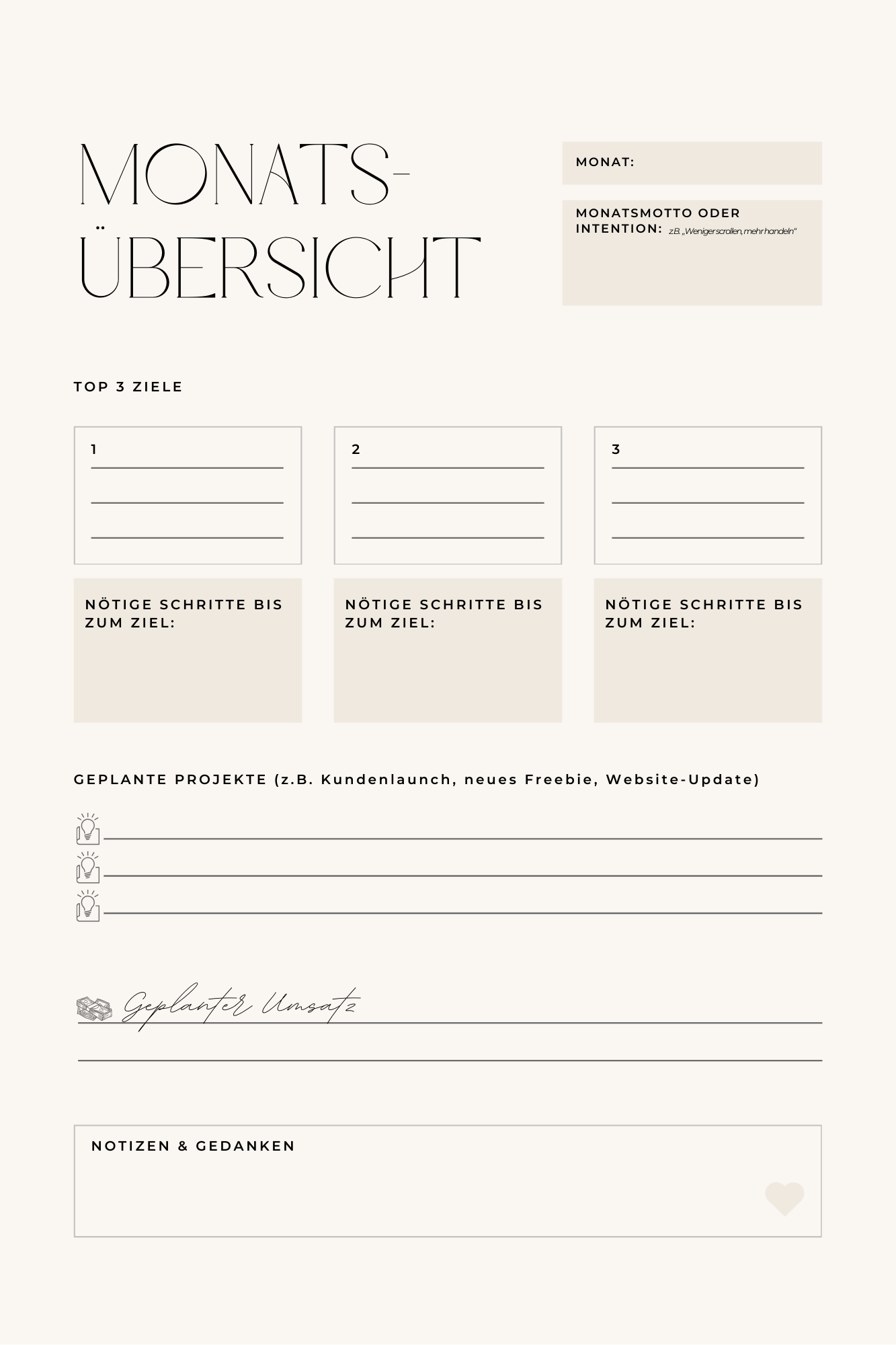 - Setze dir ein inspirierendes Monatsmotto